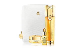 クリスマスコスメと同時に、ゲランの人気スキンケアやフレグランスを詰め込んだ2022年クリスマスコフレが到着。中でも注目は、ゲランのスキンケアを代表するエイジングケア(※1)ライン「アベイユ ロイヤル」の豪華キット。フランス・ウェッサン島の黒ミツバチが生み出す高純度のハチミツ(整肌成分)のパワーで、ハリ・弾力感にあふれる若々しい肌に導く人気スキンケアを、一度に楽しむことができる。