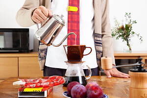 ジラフの新作ネクタイは、コーヒー器具メーカー・カリタ(KALITA)とのコラボレーションによるもの。バタバタしてしまいがちな朝に、ほっと一息つきながらコーヒーを飲んでから、キュッとネクタイを結びスイッチを入れる。カリタの企業理念でもある“ちょっといい時間、ちょうどいい時間”に寄り添うような、温もりあるネクタイ&グッズを展開する。