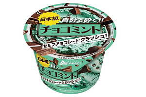 「日本初 自分で砕く!!チョコミント セルフチョコレートクラッシュ!」は、その名の通り、セルフでチョコレートを砕きながら、爽やかなチョコミントアイスを楽しめる新感覚のカップアイスだ。容器内の側面にパリパリのチョコレートがコーティングされているため、外側から手でもむことで、簡単にチョコを砕くことが可能。大き目のパリパリチョコor細かなパリパリチョコを、気分にあわせてアレンジできるので、自分好みのチョコミントアイスを楽しむことができる。