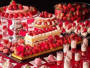 内容:いちご約6銘柄の食べ比べ、ケーキ、グラスデザート、シェフのおまかせ冷製料理、本日の焼きたて窯焼きピッツァ、メゾンカイザーのブレッド ほか
