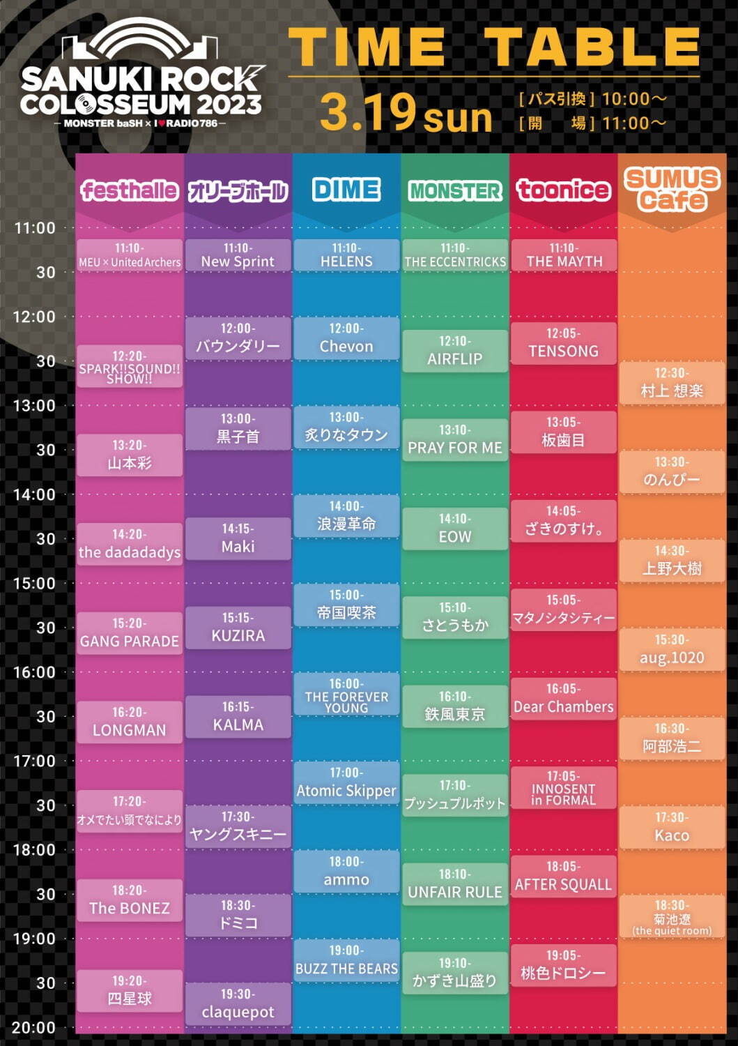 開催時間:パス交換開始10:00、開場11:00、開演11:30