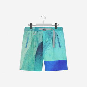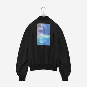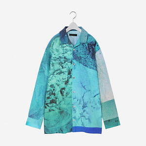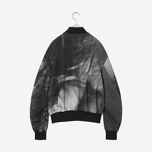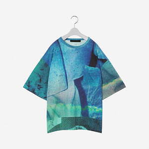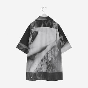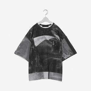 例えば、モノクロのグラフィックを配したMA-1やカラーのオーバーサイズシャツ、Tシャツ、ショーツなどは、写真をプリントした大きな生地をランダムに裁断し、構成。あえて柄合わせすることなく仕立てているため、1点1点デザインが異なるのが魅力だ。