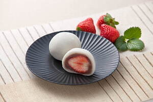 たとえば、文政元年創業の老舗「榮太樓總本鋪」からは、いちごを丸々一粒使った「いちご大福」が登場。すっきりとした半小豆餡と歯切れの良い餅で、真っ赤な完熟とちおとめを包み込んだ、こだわりの一品となっている。