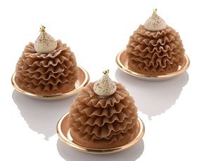 フレデリック・カッセルの1月は“マロン”がテーマ。栗の甘みが引き立つスイーツ「トルシュ・オ・マロン」を用意した。栗のホイップで仕上げたクレーム シャンティに栗のクリームを合わせ、アーモンドチョコレートでコーティングしたメレンゲを重ねている。