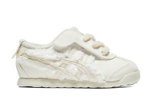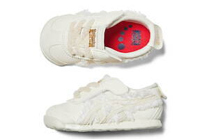 柔らかなクリームカラーを配したアッパーには、ふかふかなウサギの思わせる、フェイクファー付きのオニツカタイガーストライプを配置。また、“2023”の文字を配した、真っ赤な中敷きもデザインのポイントだ。