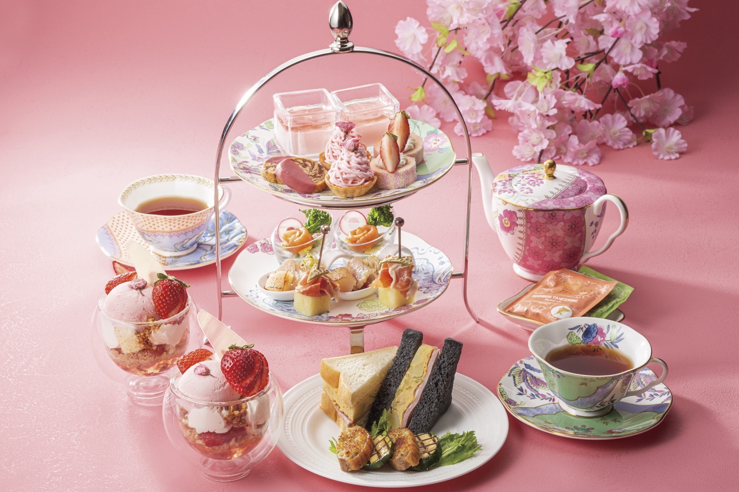 「雲の中の夜桜イブニングハイティー」ホテル椿山荘東京で、桜色パンケーキや肉厚ローストビーフ