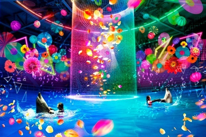 「花火アクアリウム バイ ネイキッド」水族館アクアパーク品川で、花火が彩る夜のイルカショー